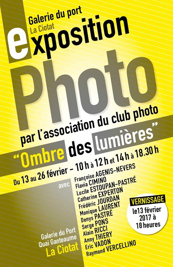 Les membres du club photo Ombre des Lumières exposent du 13 au 226 février 2017à la Galerie du Port - La Ciotat